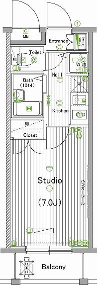 | 専有面積 | 21m2 | バルコニー面積 | 2.54m2 |