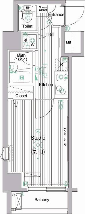| 専有面積 | 23.02m2 | バルコニー面積 | 2.7m2 |