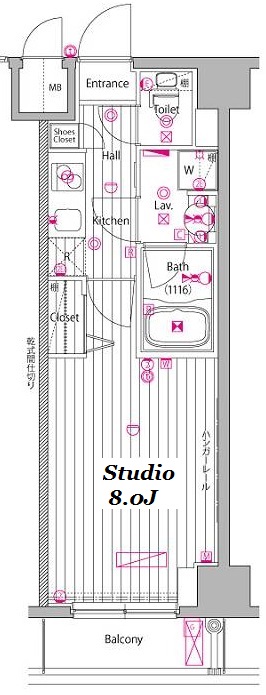 | 専有面積 | 25.52m2 | バルコニー面積 | 3.19m2 |