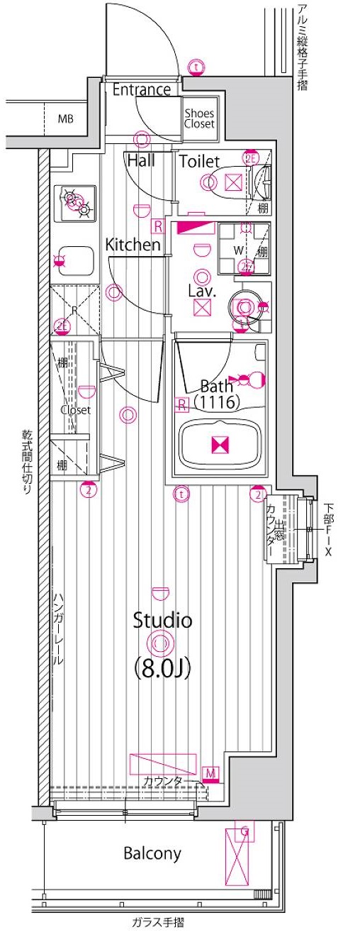 | 専有面積 | 25.38m2 | バルコニー面積 | 3.08m2 |