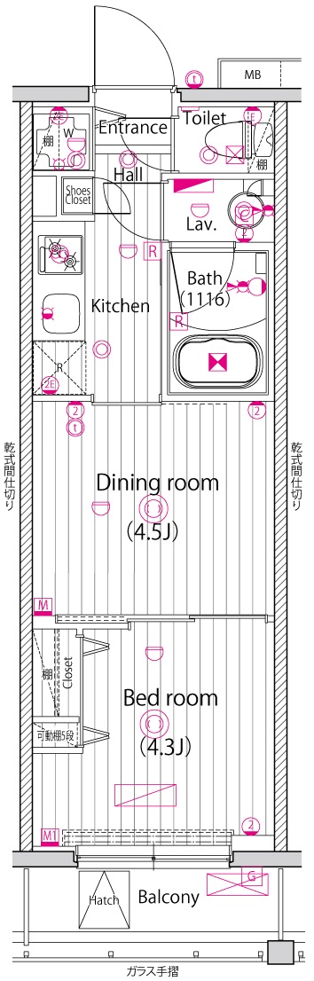 | 専有面積 | 25.51m2 | バルコニー面積 | 3.08m2 |