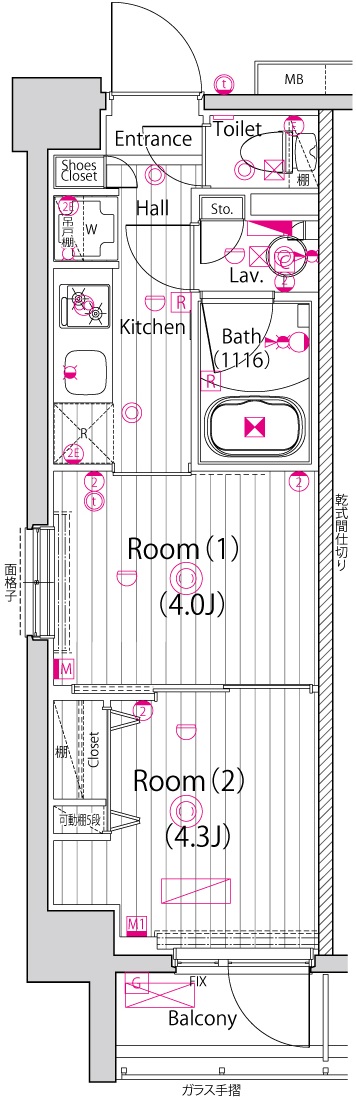 | 専有面積 | 25.51m2 | バルコニー面積 | 2.39m2 |