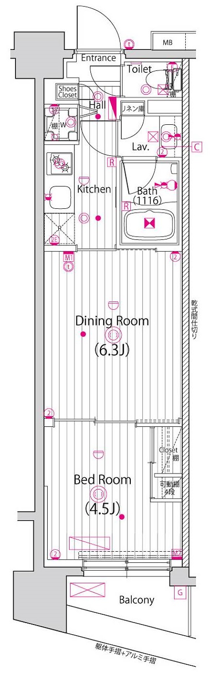 | 専有面積 | 30m2 | バルコニー面積 | 2.96m2 |