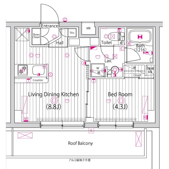 | 設備 | エアコン/照明器具/追焚、自動湯はり機能付バス/浴室乾燥機/シャワー付きトイレ/システムキッチン2口ガスコンロ/人感センサー付き玄関照明/ハンズフリーカラーモニター付きインターホン オートロック(カメラ付)/防犯監視カメラ/BS・CS110°(要別途契約)/エレベータ/宅配BOX/ゴミ置場(24時間ゴミ出し可)/ネット無料(住戸内最大1Gbps)/自動火災報知器 |