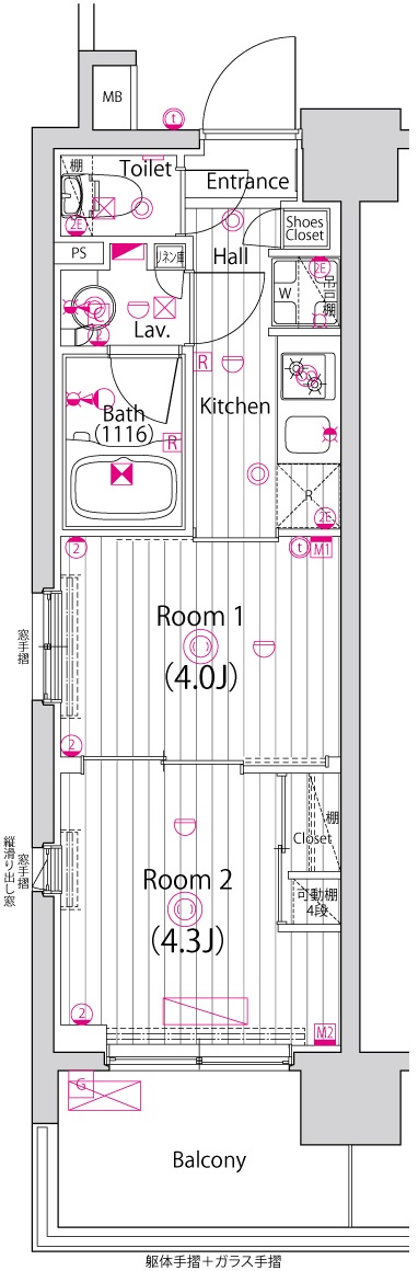 専有面積 25.55m2 バルコニー面積 4.93m2
