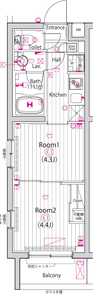 専有面積 25.96m2 バルコニー面積 3.18m2