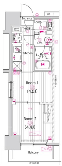 こちらのマンションは全て1DKもしくは2Kタイプ!