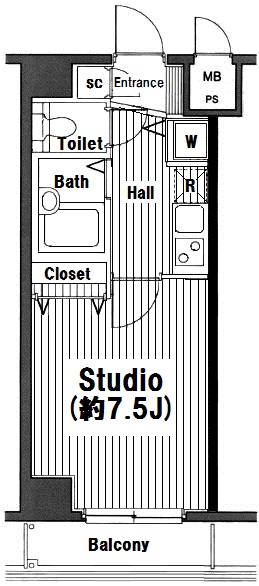 | 専有面積 | 24.25m2 | バルコニー面積 | 3.15m2 |