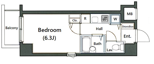 | 専有面積 | 20.91m2 | バルコニー面積 | 2.7m2 |