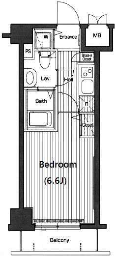 専有面積 21.66m2 バルコニー面積 2.8m2